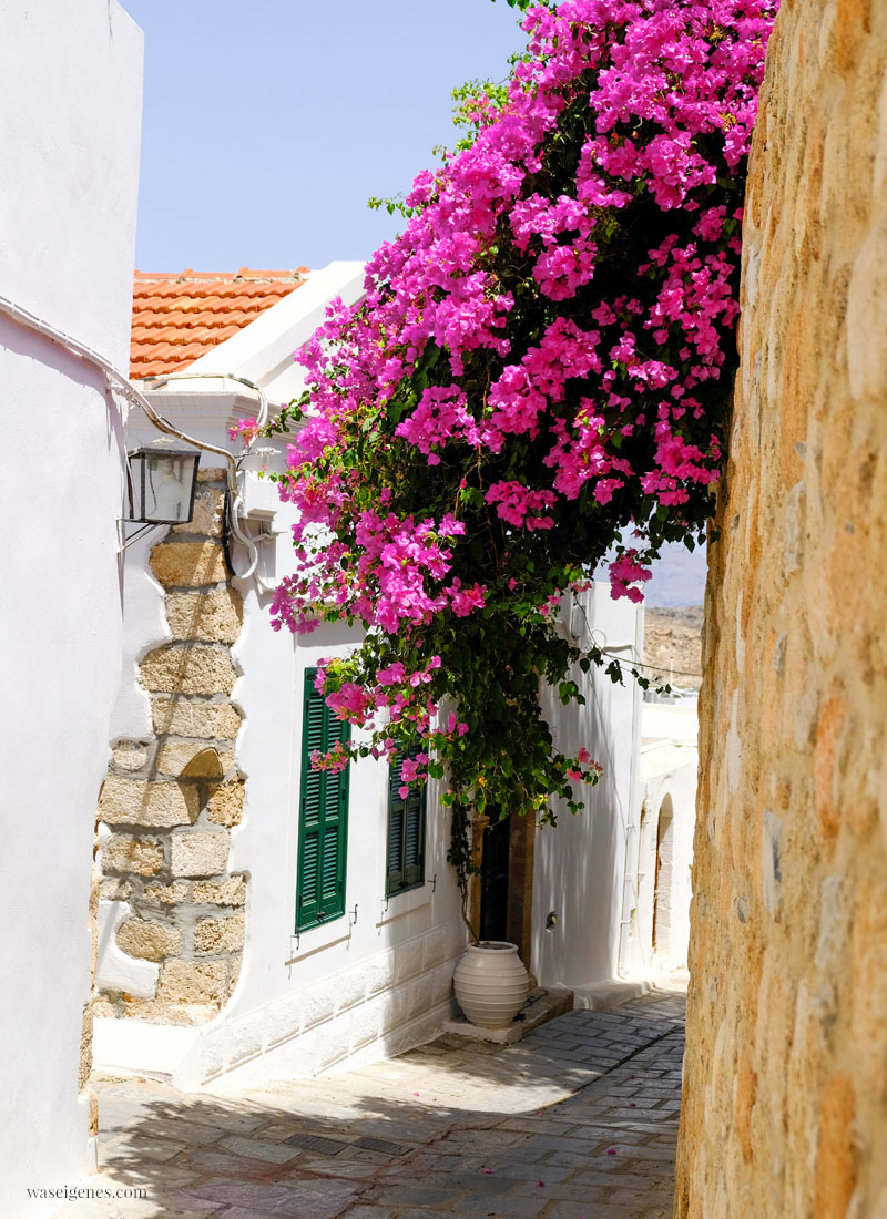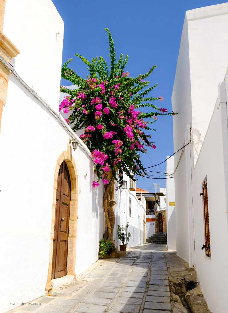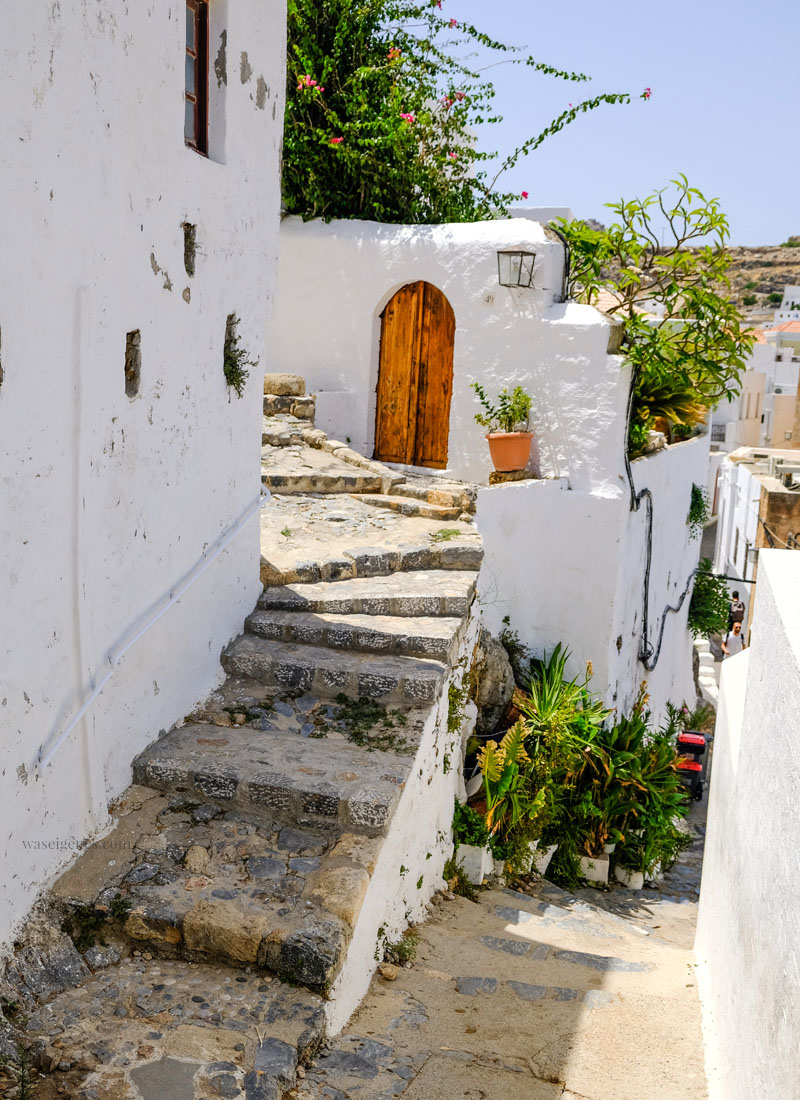 Ihr könnt Euch vorstellen, die Stimmung, als wir ausstiegen, war erstmal ganz weit unten. Hilft alles nix, auf geht’s! Wir marschierten den Hügel hinab ins malerische Städtchen Lindos an der Ostküste Rhodos, wo Autos nicht erlaubt sind und suchten uns erstmal Schatten.