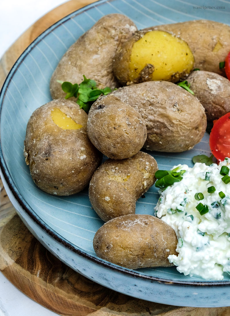 Ich liebe solche einfachen und schnellen Gerichte und Kartoffeln kann ich sowieso immer essen. Gerne mit Quark, aber nur mit Butter machen sie mich auch glücklich.