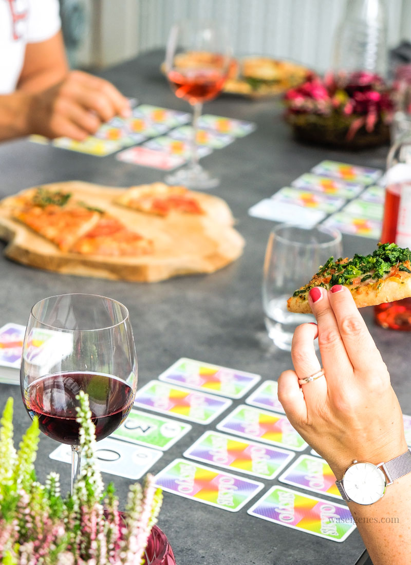 Es war ein wirklich lustiger und geselliger Nachmittag auf unserer Terrasse mit Pizza, Wein und einem Spiel, welches die Gemüter hin und wieder kochen ließ. Fazit: das müssen wir öfter machen. Einfach beisammen sitzen, gemeinsam essen und trinken und dabei eine Runde spielen. Denn spielen verbindet Menschen, alt und jung.