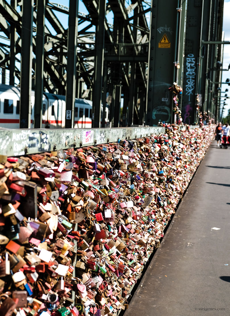 Auf der Hohenzollernbrücke, mittlerweile auch die Schlossallee für Verliebte genannt, sind seit meinem letzten Besuch einige Liebeschlösser dazugekommen. Es wird immer mal wieder drüber gesprochen, dass die Schlösser weg müssen, denn sie verursachen Rost an der guten alten Brücke. Aktuell habe ich nix davon gehört. Finde ich gut, denn ich mag die vielen Liebesbeweise.