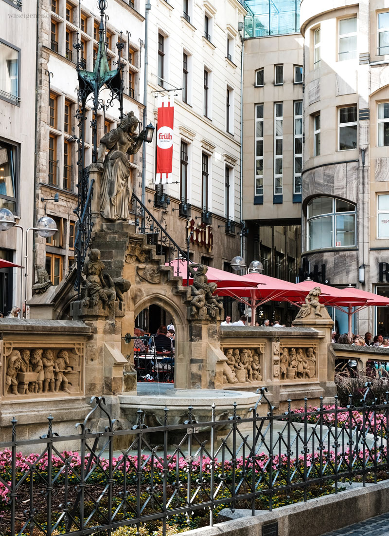 Über den Alter Markt, wo wir einen Blick auf den Kallendresser, eine Bronzefigur, die ihre Notdurft in die Regenrinne verrichtet, warfen, ging’s vorbei am Jan von Werth Brunnen.