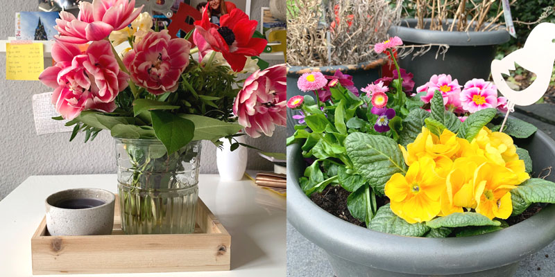 Blumen, Blumen, Blumen – ich hole in den Frühling ins Haus. Auf dem Küchentisch stehen die ersten Tulpen und so langsam kümmere ich mich um den völlig runtergrockten Garten.