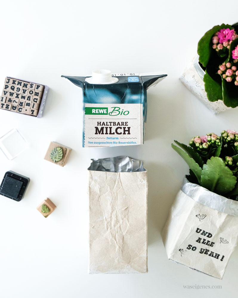 Ich habe übrigens verschiedene Milchtüten upgecycelt, denn meine Nachbarinnen haben mir leere Tüten zur Verfügung gestellt. Es hat mit allen Marken funktioniert.