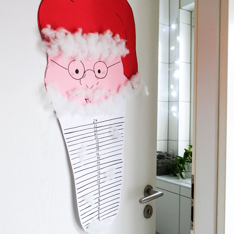 An unserer Gäste-WC-Türe hängt dieses Jahr kein Schneemann (so sah das 2014 und 2016 hier aus, vom letzten Jahr gibt’s kein Bild), sondern ein Weihnachtsmann, dem wir ab morgen jeden Tag den Bart stutzen werden.