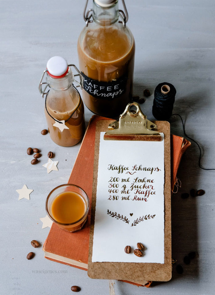 Der gemalte Entwurf meiner Weihnachtskarten ist fertig. Letztes Jahr gab es das Bratapfel Tiramisu, dieses Jahr das Rezept für den Heiße Liebe Likör.