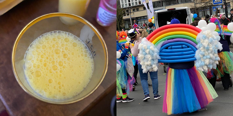 Die kommenden fünf Tage sind wir dauernd op jöck, schauen uns fünf Umzüge hier in unserer Stadt an. Blöd, dass ich ganz schön erkältet bin. Da hilft auch keine Fanta mit Eierlikör. Habt Ihr das schonmal getrunken? Schmeckt köstlich.