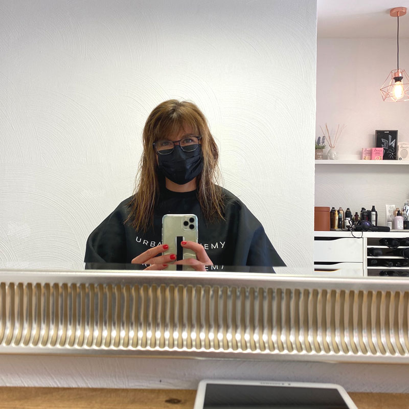 Und so sitze ich auch beim Friseur. Ja, es ist jetzt normal immer und überall dieses Ding anzuhaben… dennoch komme ich mir damit manchmal noch komisch vor.