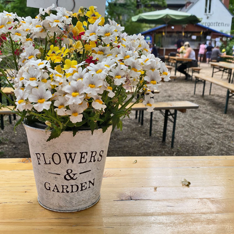 Mein zweites zu Hause ist mittlerweile die Gärtnerei. Da ist nicht viel los, ich finde alles, was ich haben will. Von Woche zu Woche wird unser Garten bunter.