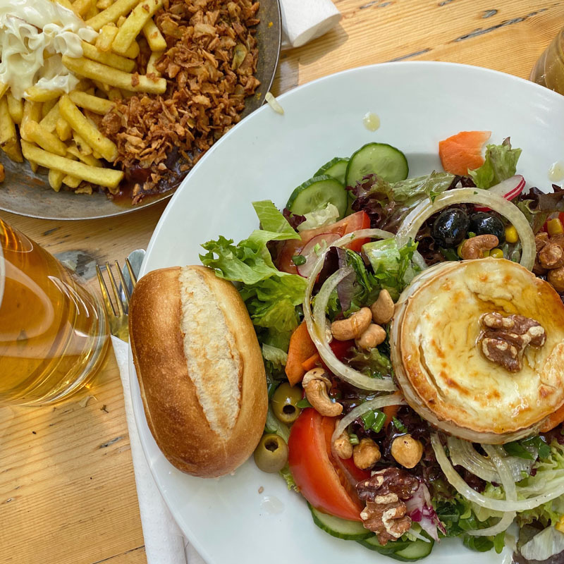 Der Mai endet mit einer tollen Fahrradtour mit Freunden. Das Ziel ein Waldbiergarten, ein groooßes Radler und ein köstlicher Salat mit Ziegenkäse und Honig. Als wir ankommen ist noch wenig los, erst später füllt sich der Biergarten. Wir sitzen unter freiem Himmel, Masken müssen nicht getragen werden. Es ist wie früher – und dabei denke ich dauernd: dürfen wir das?