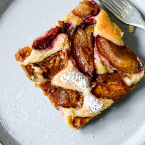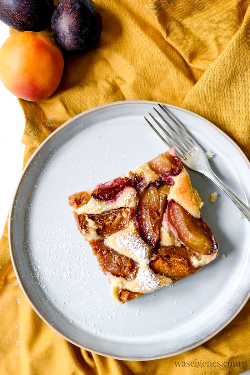Schreibt mir gern in die Kommentare, wie Ihr ihn belegt habt – wovon kam mehr auf den Kuchen? Seid Ihr eher Team Zwetschge oder Team Aprikose?