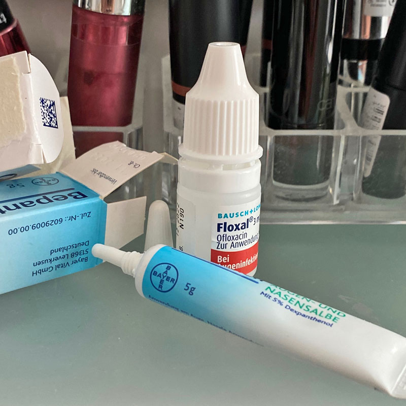 Am nächsten Tag bringe ich den Mann zur Darmspiegelung und am Tag darauf passiert mir etwas wirklich Bescheuertes. Ich verletzte mich selbst am Auge – Riss in der Hornhaut – und liege dann erstmal das Wochenende über flach. Was für scheiß Schmerzen. Ich creme und tropfe und tropfe und creme, denn am Sonntag will ich wieder fit sein.