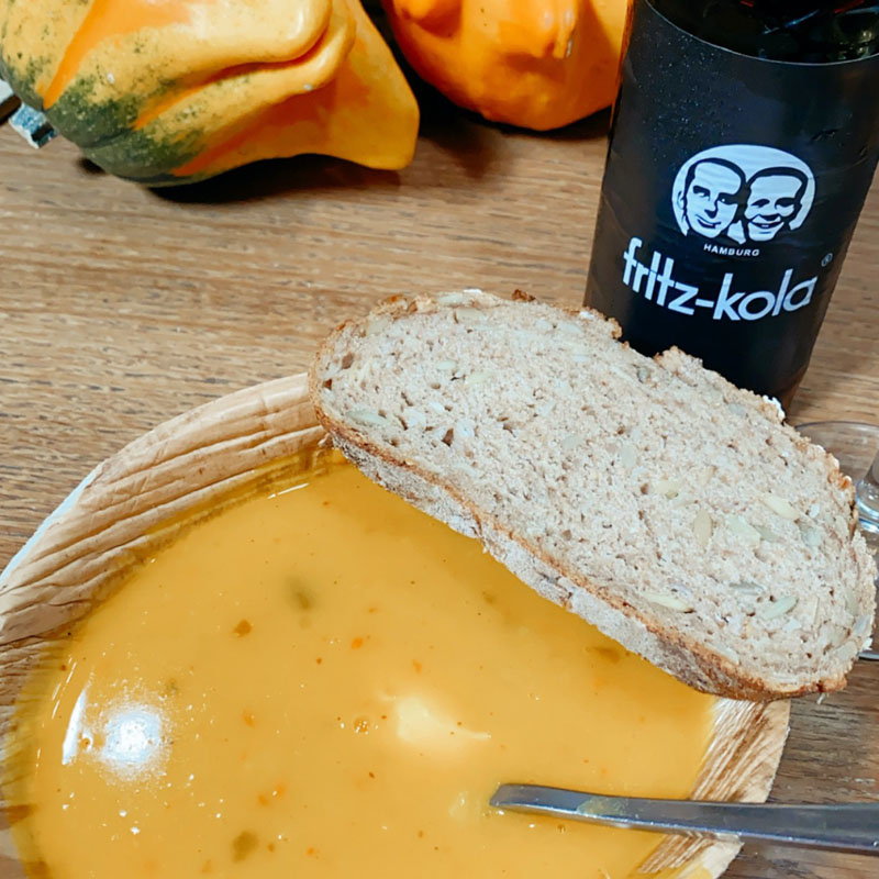 Meine erste Kürbissuppe in diesem Jahr. Die habe ich allerdings nicht selbst gekocht, dafür liegt aber hier schon ein Hokkaido parat.