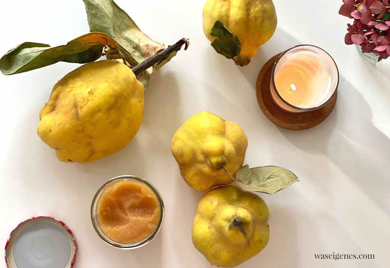 Ich habe einen Beutel riiiesiger Quitten von Freunden aus deren Garten geschenkt bekommen. Daraus habe ich am Wochenende Likörchen und eine Quitten Marmelade gekocht.
