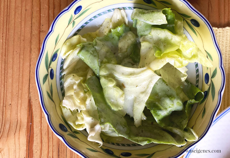 Mmh, süßen Kopfsalat… ist das Dressing mit Sahne gemacht? So kenne ich das auch von zuhause! :)