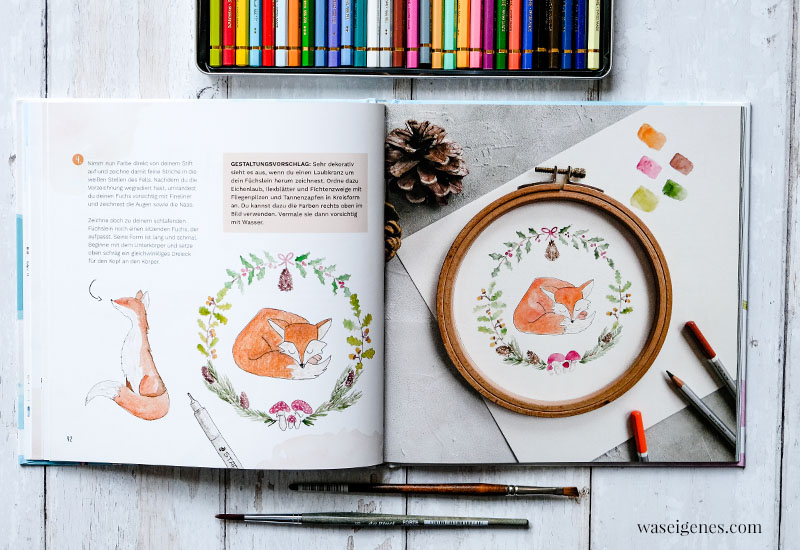 Heute möchte ich Euch ein schönes Buch vorstellen, mit dem ihr lernt oder vielleicht einfach nur Lust bekommt, einen Stift in die Hand zu nehmen oder einen Pinsel in Wasser zu tauchen: