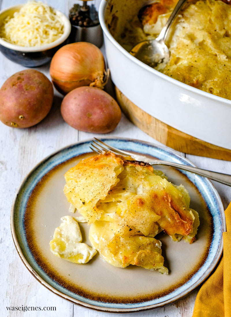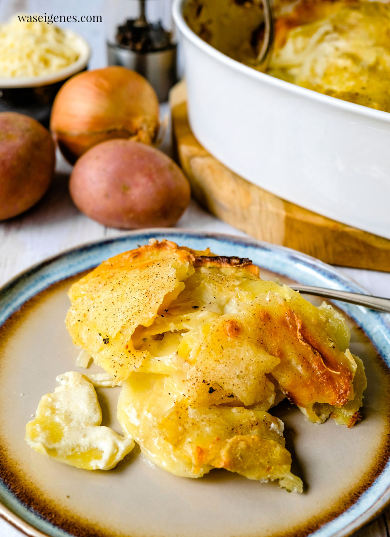 Kartoffelgratin mit Käse? Das gehört in ein klassisches Gratin nicht rein..