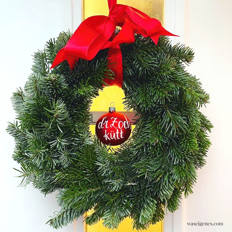 Anfang des Monats hänge ich einen grünen Kranz an die Haustüre. Wieder mit der Kugel vom letzten Jahr. D’r Zoch kütt… hach, das wäre schön, aber das wird er im Februar nicht tun. Wir sind jeck im Herzen, das muss für 2021 genügen.
