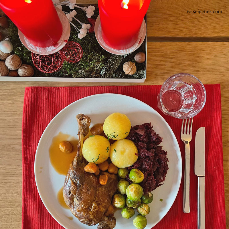 Wir kaufen derweil einen Weihnachtsbaum und bestellen Gans. Zu Hause, zu viert, ist’s schön und lecker und gemütlich, trotzdem sind wir wehmütig, dass das alljährliche Gans-Essen nicht mit der buckeligen Verwandtschaft im Restaurant statt findet.