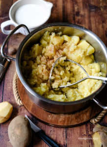 Ob Ihr die Kartoffeln zu Stampf oder Püree verarbeitet, das bleibt Euch überlassen. Ich esse beides gerne. Mal darf’s ein bisschen stückiger sein, mal mag ich es lieber schön cremig.