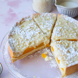 Warum ich Pfirsich nachschlagen musste, habt Ihr sicherlich schon gecheckt. Heute möchte ich mit Euch das Rezept für einen Milchreiskuchen mit Pfirsichspalten teilen.