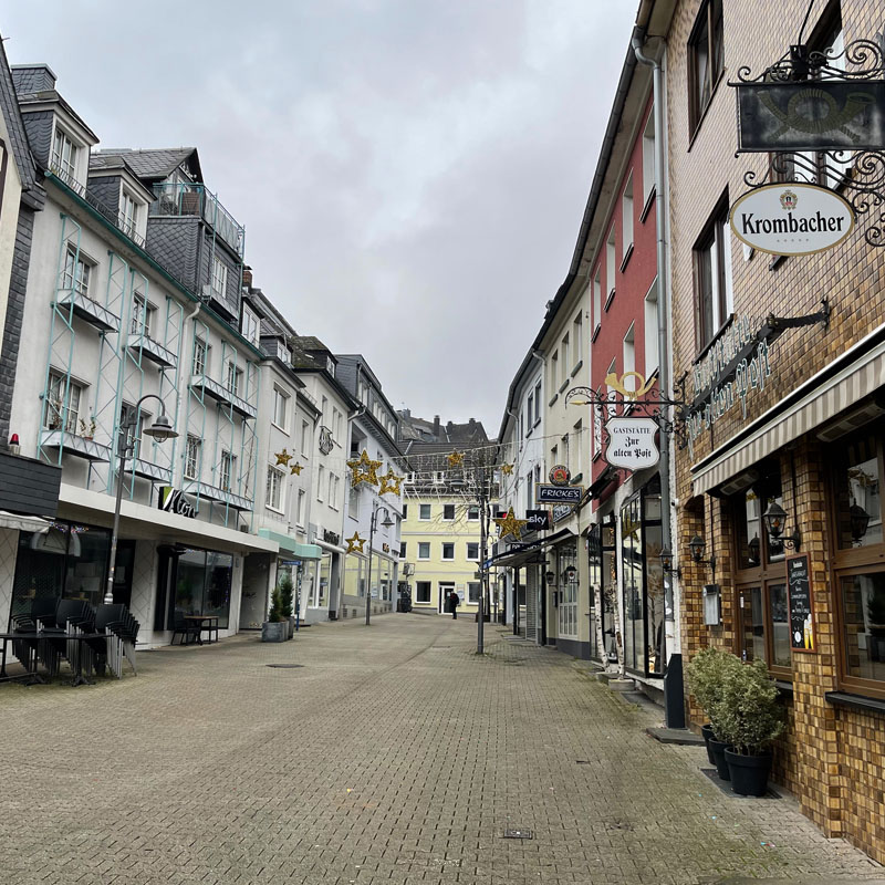 Am nächsten Morgen, es ist der 1. Tag im neuen Jahr, machen wir einen Ausflug. Wir fahren nach Siegen, in die Heimatstadt meines Mannes. Er zeigt den Kindern, wo er als Kind gewohnt hat und wo er zur Schule gegangen ist. Danach laufen wir durch die Altstadt zum Schloss. Die Straßen sind wie leergefegt.