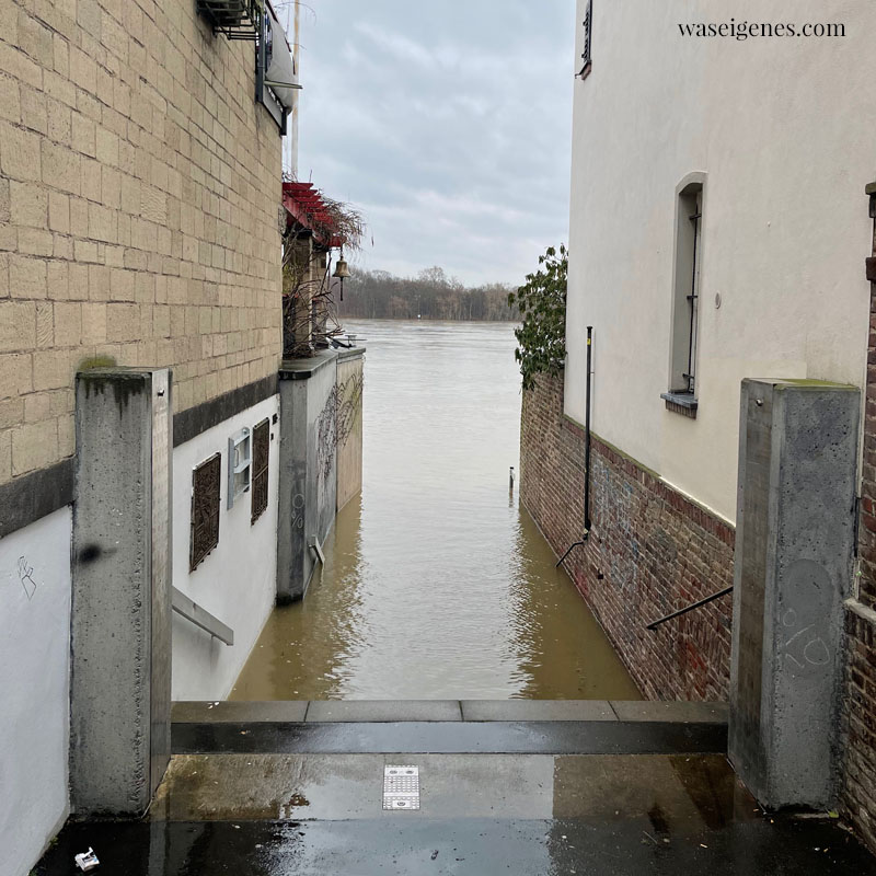 Am Wochenende drauf fahren wir runter nach Rodenkirchen. Dort war ich als Kind recht oft, denn dort, direkt am Wasser, lebte damals die Tante meines Papas, die wir immer mal wieder besuchten. Ich zeige den Kindern das Haus und die Straße, wir bummeln ein bisschen durch den Ort und am Hochwasser entlang.