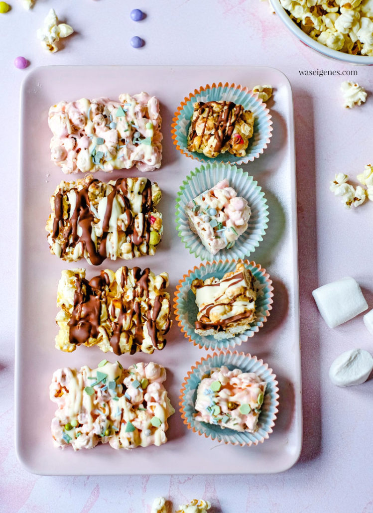 Und dann habe ich noch Popcorn gefeiert und daraus knusprig süße Popcorn Riegel gemacht. Die sind so lecker süß – perfekt für gemütliche Kino-Abende zu Hause.