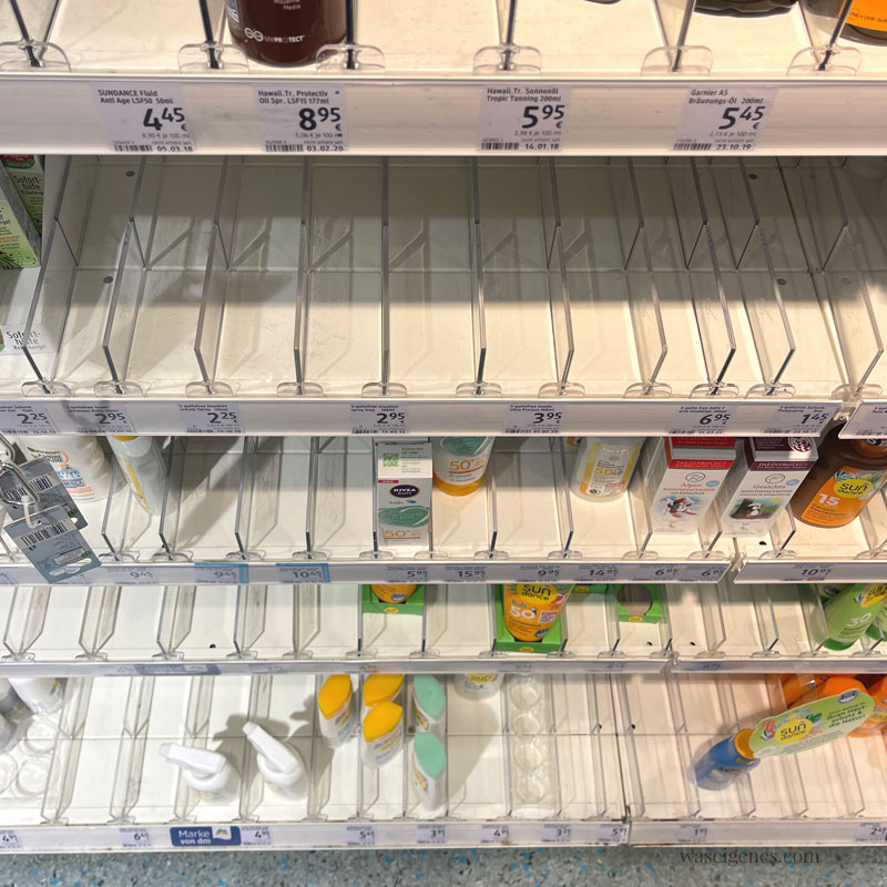 Bei einem kurzen Besuch in der Drogerie wird klar: Alle wollen in den Urlaub, Sonnencreme ist ausverkauft.