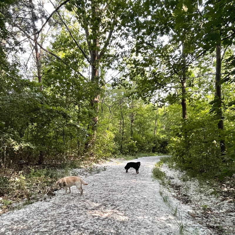 Der Wald ist mal wieder weiß. Die Pappel läßt es schneien. Sieht faszinierend aus, aber ich habe ja immer Schiss, dass es anfängt zu brennen.