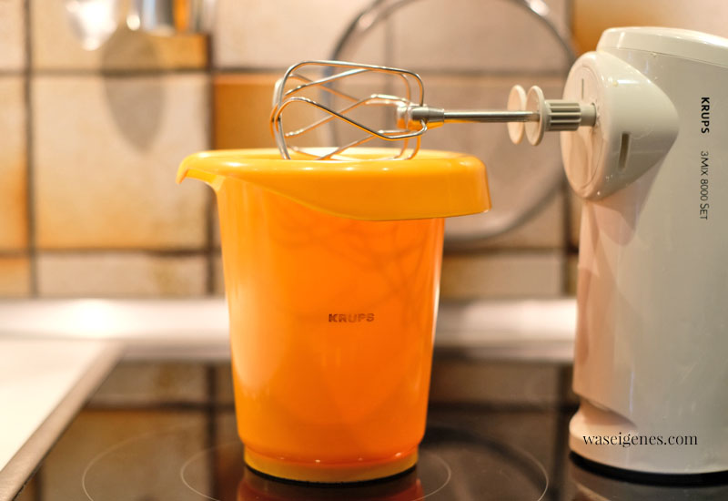 Meine Mama hatte noch das dazu passende orange Rührgeräte und ich habe irgendwann fast das gleich von meiner Ur-Oma geerbt – das war aber eher orange-rot.