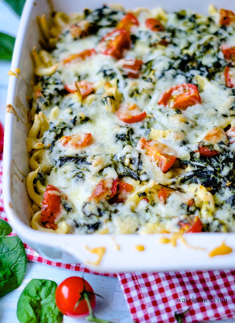 Der Spätzleauflauf mit Blattspinat und Kirschtomaten ist eine tolle vegetarische Alternative zum Spätzlauflauf mit Hack und Champignons und Röstzwiebeln, der bei uns auch sehr beliebt ist.