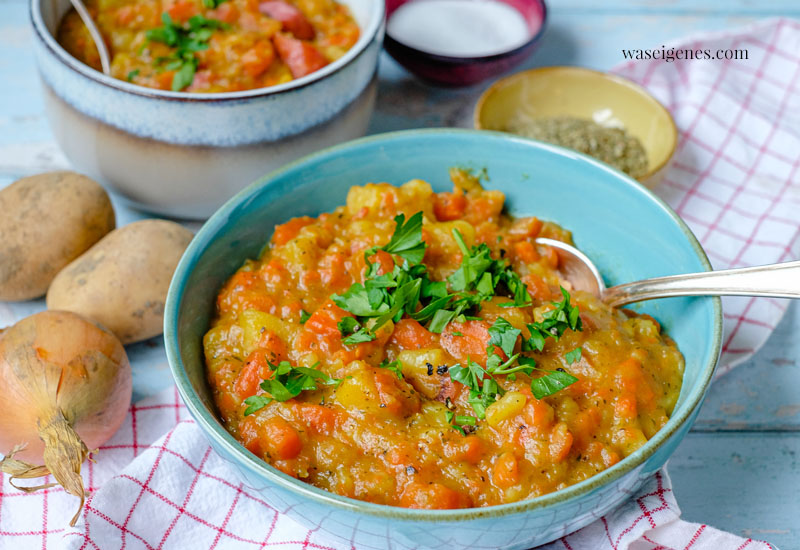 Möhren, gerne auch roh und Kartoffeln sowieso, könnte ich jeden Tag essen. Und bei den Temperaturen am liebsten im Eintopf oder in der Suppe.