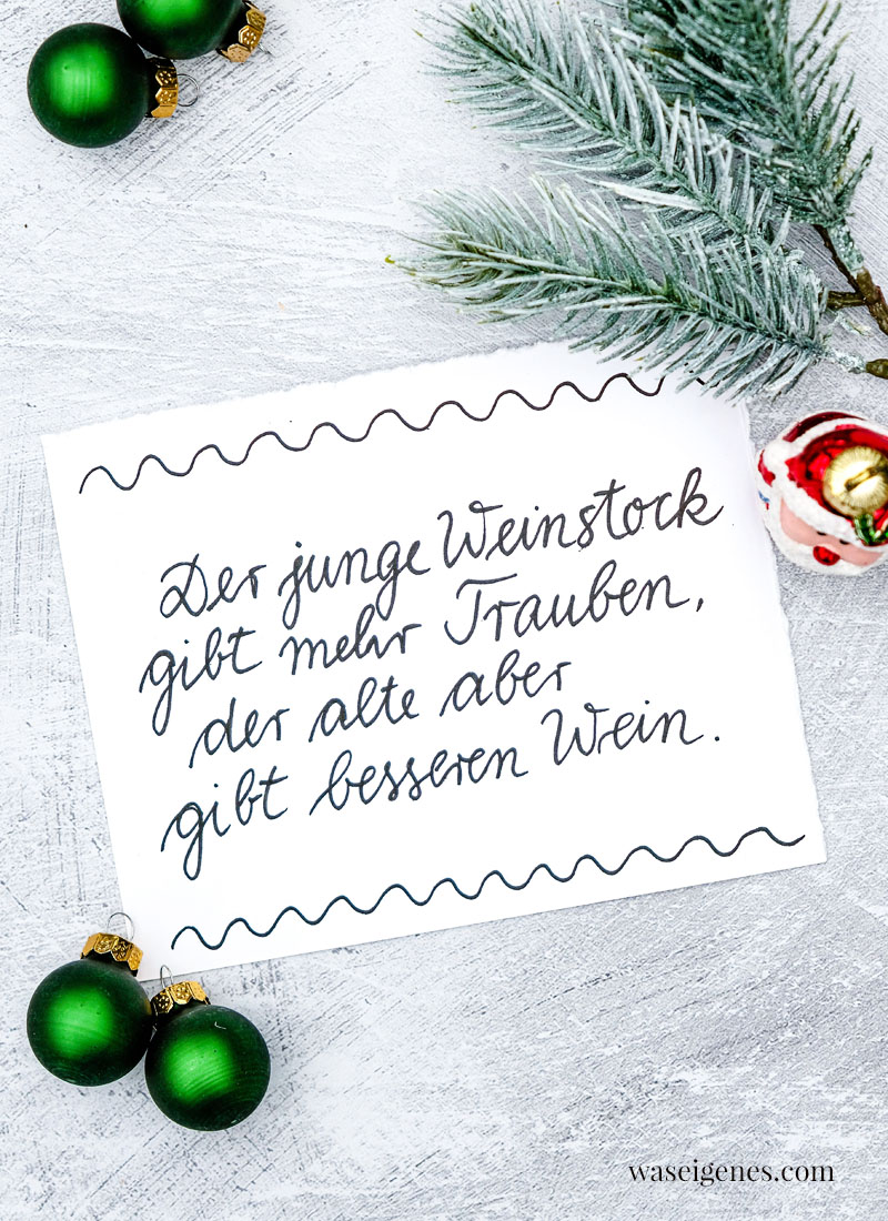 Dieser Spruch da oben meint für mich also vielmehr, dass es Zeiten gibt, in denen die Jüngeren mehr liefern (Trauben) und mal die Älteren (Wein). Und nur zusammen wird die Sache rund.