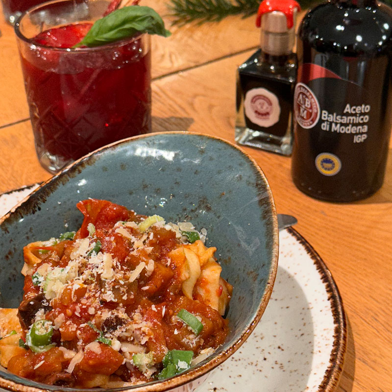 Was mich von den Socken haut, ist der wahnsinnig leckere Cocktail mit roter Beet und Balsamico Essig. Ihr glaubt es vielleicht nicht, aber der schmeckt wirklich fantastisch.