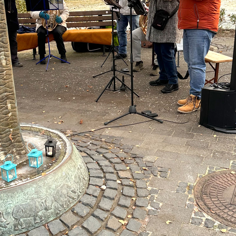 Mein Mann und ich helfen mit, schenken Glühwein aus, verteilen Stuten und singen natürlich auch mit. Der Bläserkreis Laudate gibt sein Bestes und dennoch frieren ihnen immer wieder die Mundstücke ein. Die Armen!