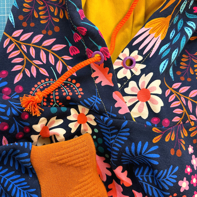 Mein neuer Hoodie erntet jedenfalls eine Menge Lob und Anerkennung. Den wenigsten fällt auf, dass ich doofe Nuss die Niete durch die komplette Kapuze geschlagen habe. Sehr ordentlich, sehr akkurat (Ihr wisst ja, nicht meine Kernkompetenz, also durchaus für mich ein Grund stolz zu sein!), aber leider komplett durch. Doof bleibt doof, da helfen keine Pillen. Ich mag ihn trotzdem.