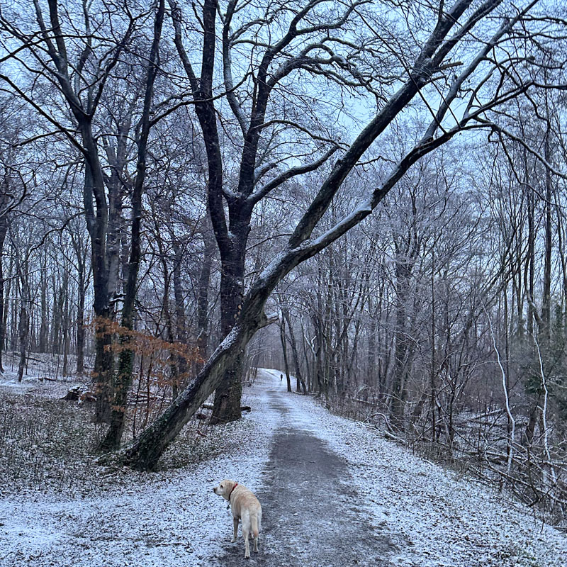 Und dann schneit es hier auch ein bisschen. In unseren Gefilden, in dieser Kölner Bucht, kommt es ja eher selten vor. Schade, denn Mollie und ich mögen das sehr.