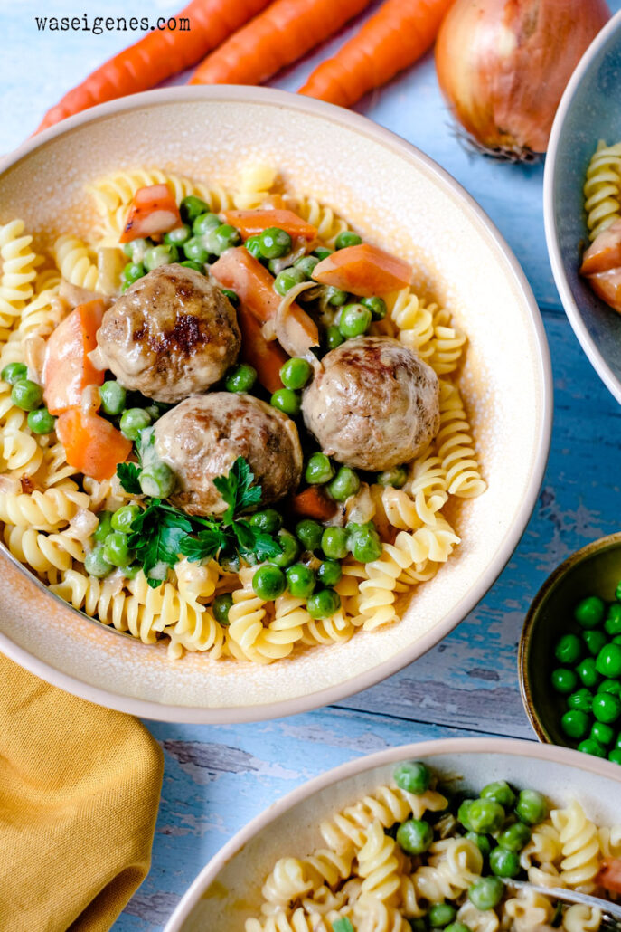 Jedenfalls gab es hier eine wunderbar herzhafte und einfach leckere Pfanne mit Hackbällchen, Erbsen und Möhren (genannte Wikingerpfanne). Ich habe eine deftige Käse-Lauch-Suppe aufgetischt und Dattel-Chia-Pralinen gerollt.