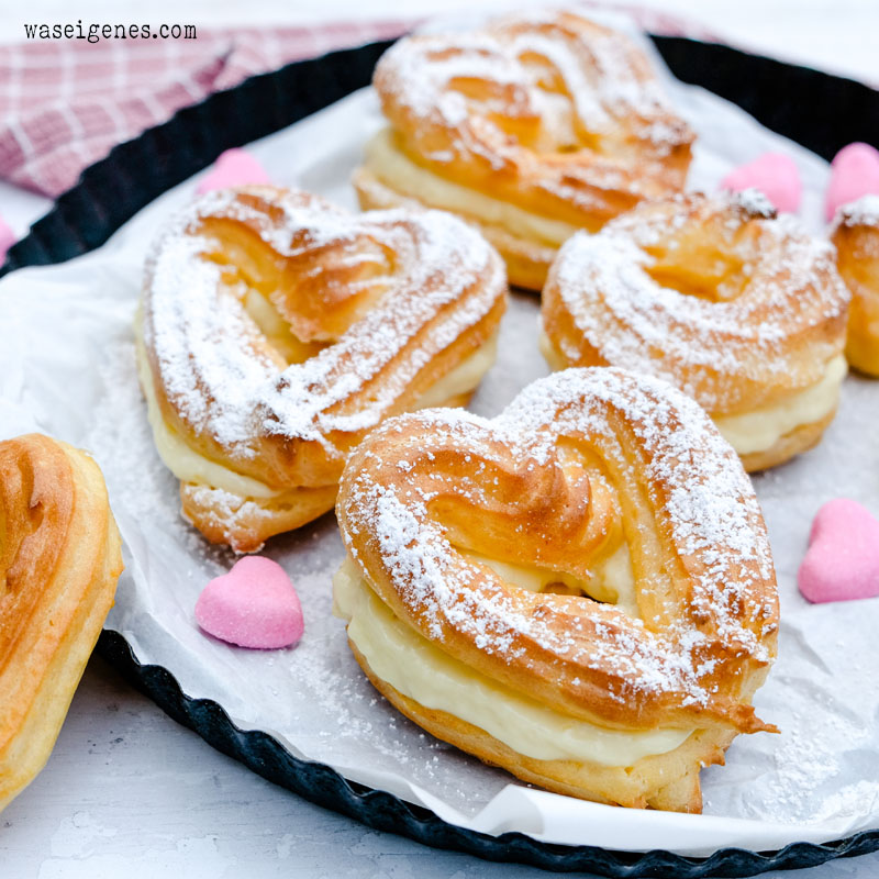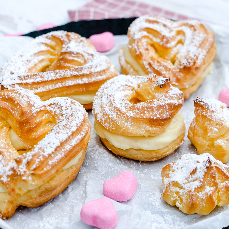 Hab ich schon mehrmals ausprobiert! Ich hatte noch nie Brandteig gemacht und hab ihn super hinbekommen. Die Herzen sind soooo lecker!