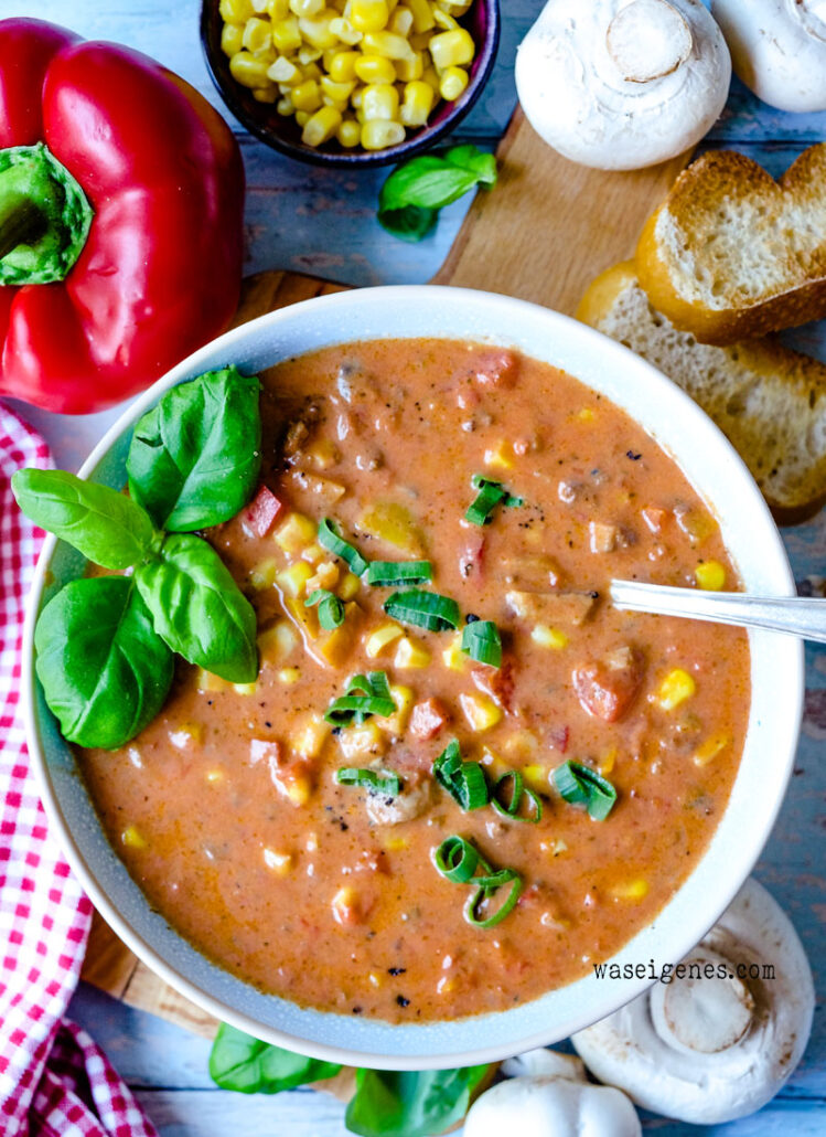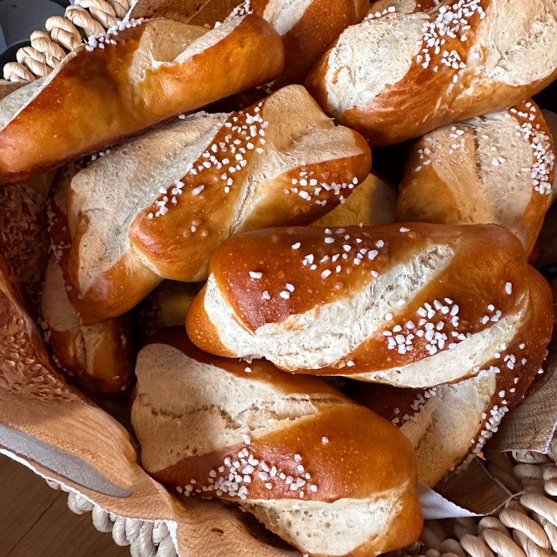 Und dann gab es natürlich auch Herzhaftes… zum einen das tolle Fingerfood: Flammkuchen Brezeln, überbackene Laugenbrezeln mit Schmand und Cheddar und Schnittlauch! Und zum anderen die wahnsinnig leckere Pizzasuppe mit viel buntem Gemüse und Hackfleisch: