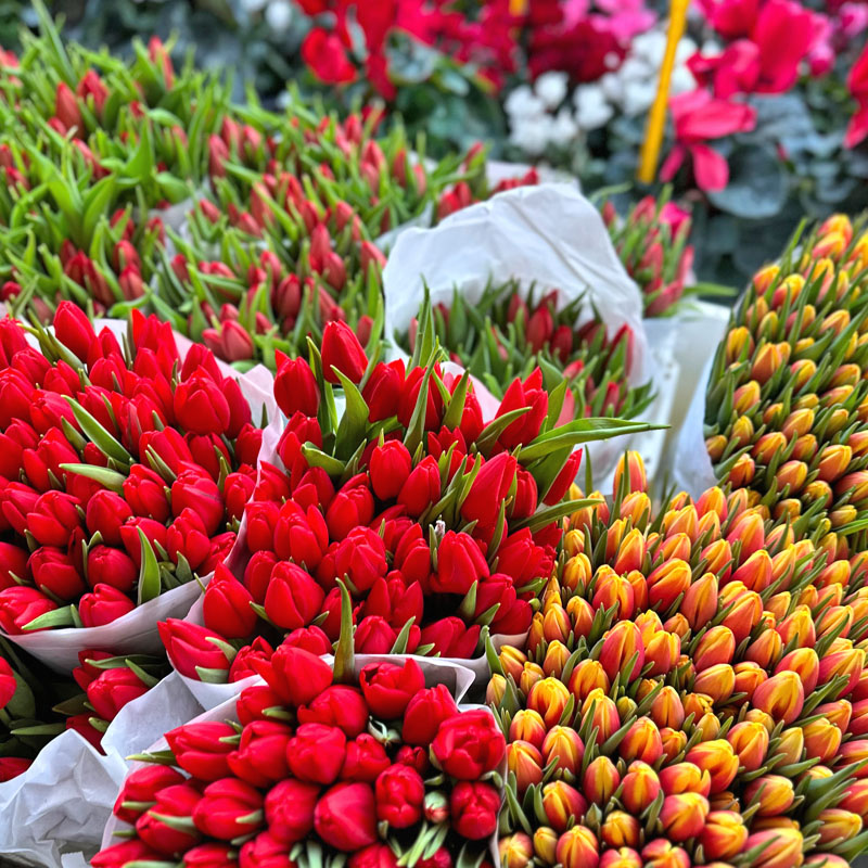 GEKAUFT: Tulpen! Und Stoff und zwei Reißverschlüsse auf dem Stoffmarkt. Aber nicht viel. Ich muss hier erstmal abarbeiten, wegnähen, was zu vernähen ist, bevor ich Nachschub kaufe. Ausserdem war das Wetter an dem Tag nicht Käufer-freundlich. Leider.
