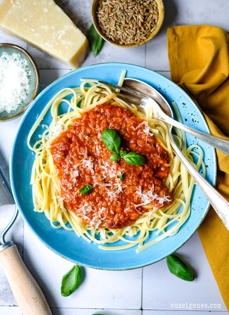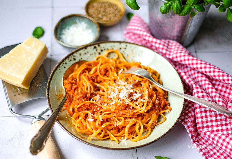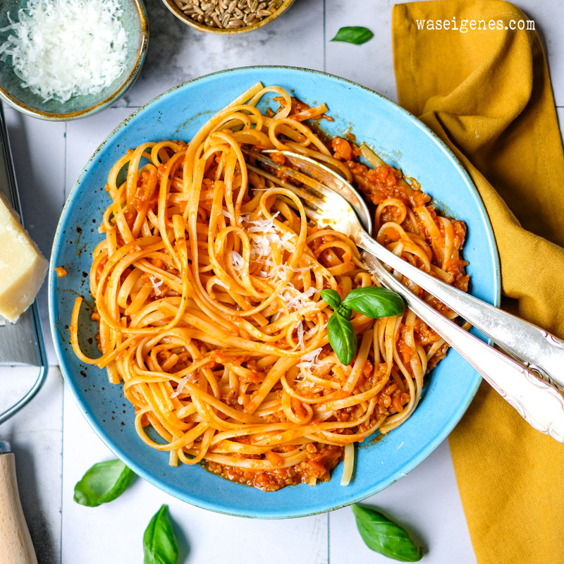Aber heute geht es ja um Bolognese und deswegen sage ich Euch: Hier findet Ihr das Rezept für die vegane Linsen Bolognese -> KLICK.