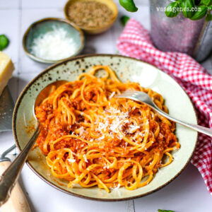 Und für Fleischesser habe ich hier auf meinem Blog natürlich auch ein ganz klassisches Bolognese Rezepte mit Hackfleisch. Wunderbar würzig-herzhaft! -> KLICK
