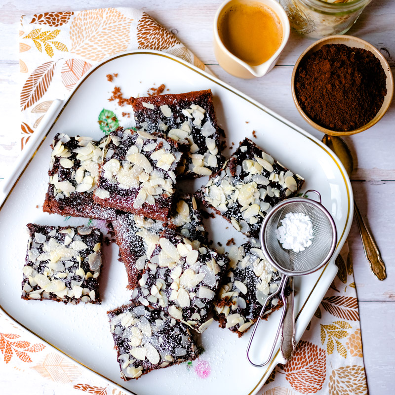 Wie wäre es denn heute mit einem Stückchen Kuchen? Ich hätte hier etwas ganz Feines für Euch! Ein Blechkuchen; unten ein buttrig-süßer Rührteig mit Vanille, Zimt und Kakao und dadrauf eine zähflüssige Masse aus Butter, Kakao und starkem Espresso, die langsam in den gebackenen Rührteig sinkt! Welch Gaumenfreude!