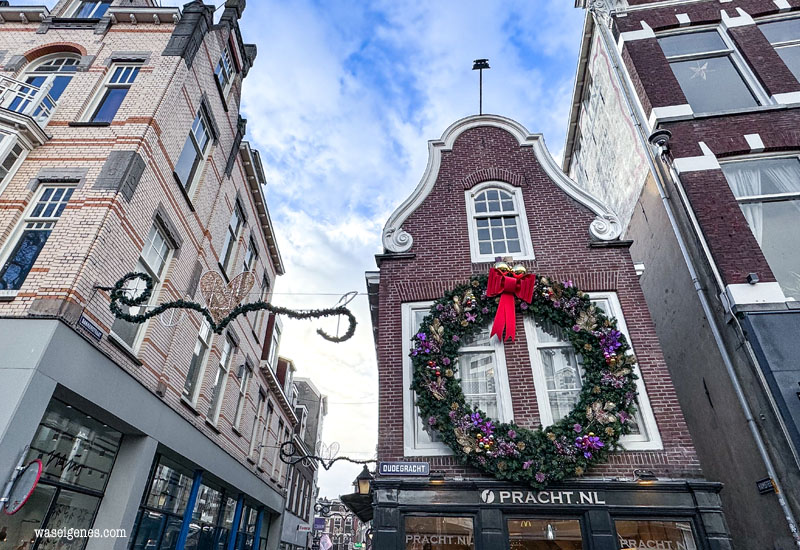 Kurz bevor wir uns aus Utrecht verabschiedet haben, musste ich natürlich noch den legendären Kranz, der wieder am Haus von Pracht.nl, einem Schmuckgeschäft, hing, fotografieren.