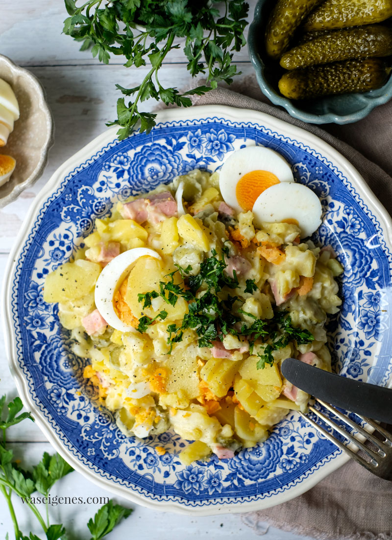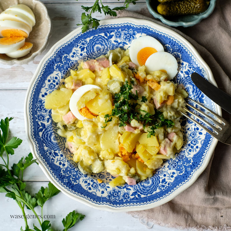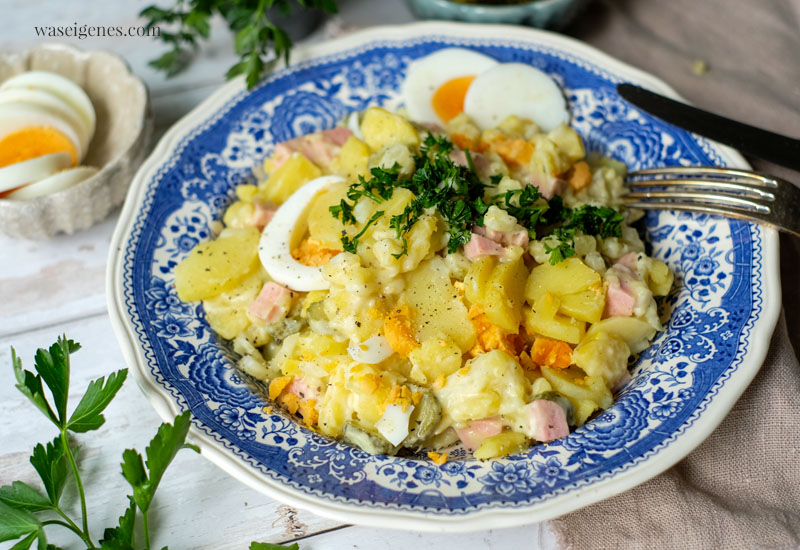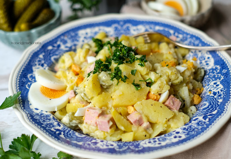 Alles schön und gut, aber: es geht doch nichts über einen klassischen Kartoffelsalat mit Ei und Gürkchen, mit Fleischwurstwürfelchen und einer cremigen Mayo-Soße. Finde Ihr nicht auch?