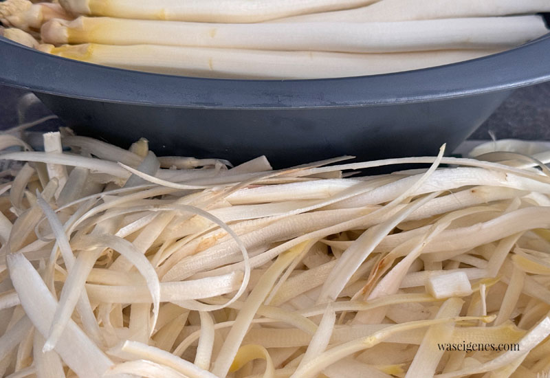 Zu Hause mache ich mir einen Podcast an und schäle flott den Spargel, schlage ihn dann in ein nasses Geschirrtuch …