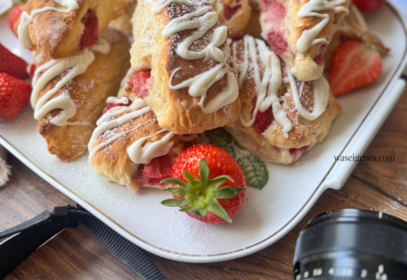 Danach baue ich mein Fotostudio in der Küche auf und knipse Erdbeer-Scones, die ich gestern gebacken habe. Seeehr lecker, das kann ich schon verraten.