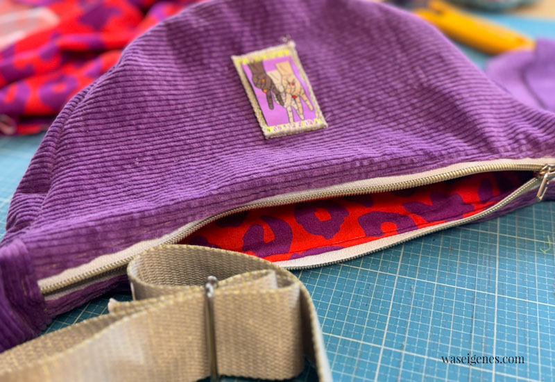 Den lila Cord habe ich im Stoffmaat gekauft, das Futter ist schönster Stoff von Anke, auch das coole Label – habe ich Euch letzten Monat schon gezeigt {klick}