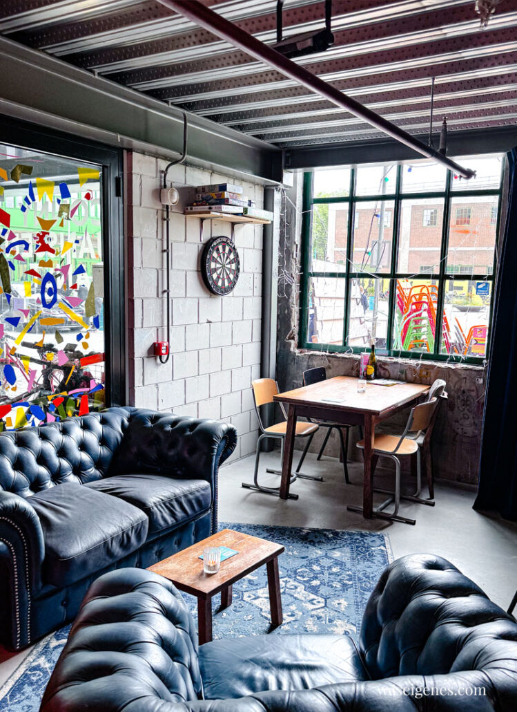 In dieser alten Industriehalle befinden sich eine Menge Ecken und Nischen, in denen man sich einfach lassen kann. Sitzen, essen, trinken, arbeiten, chillen, lesen,… alleine oder Freunden.